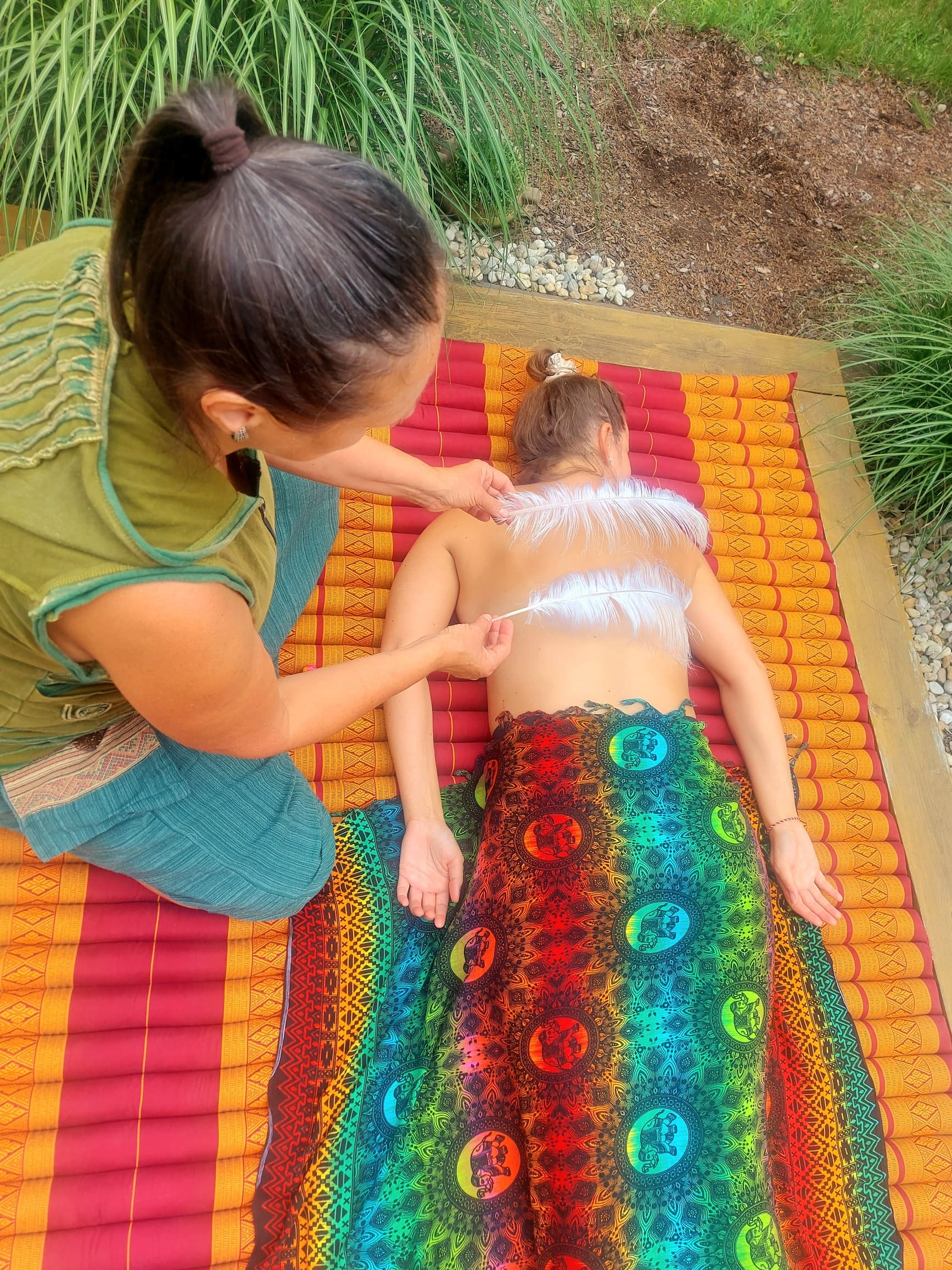 Přijímáte něžné doteky, lásku a vlídnost při masáži v meditativním stavu. Masáž navrací přijímajícímu sebevědomí, rovnováhu a otvírá další dimenze vědomí. Dochází k vysoké vibraci těla.