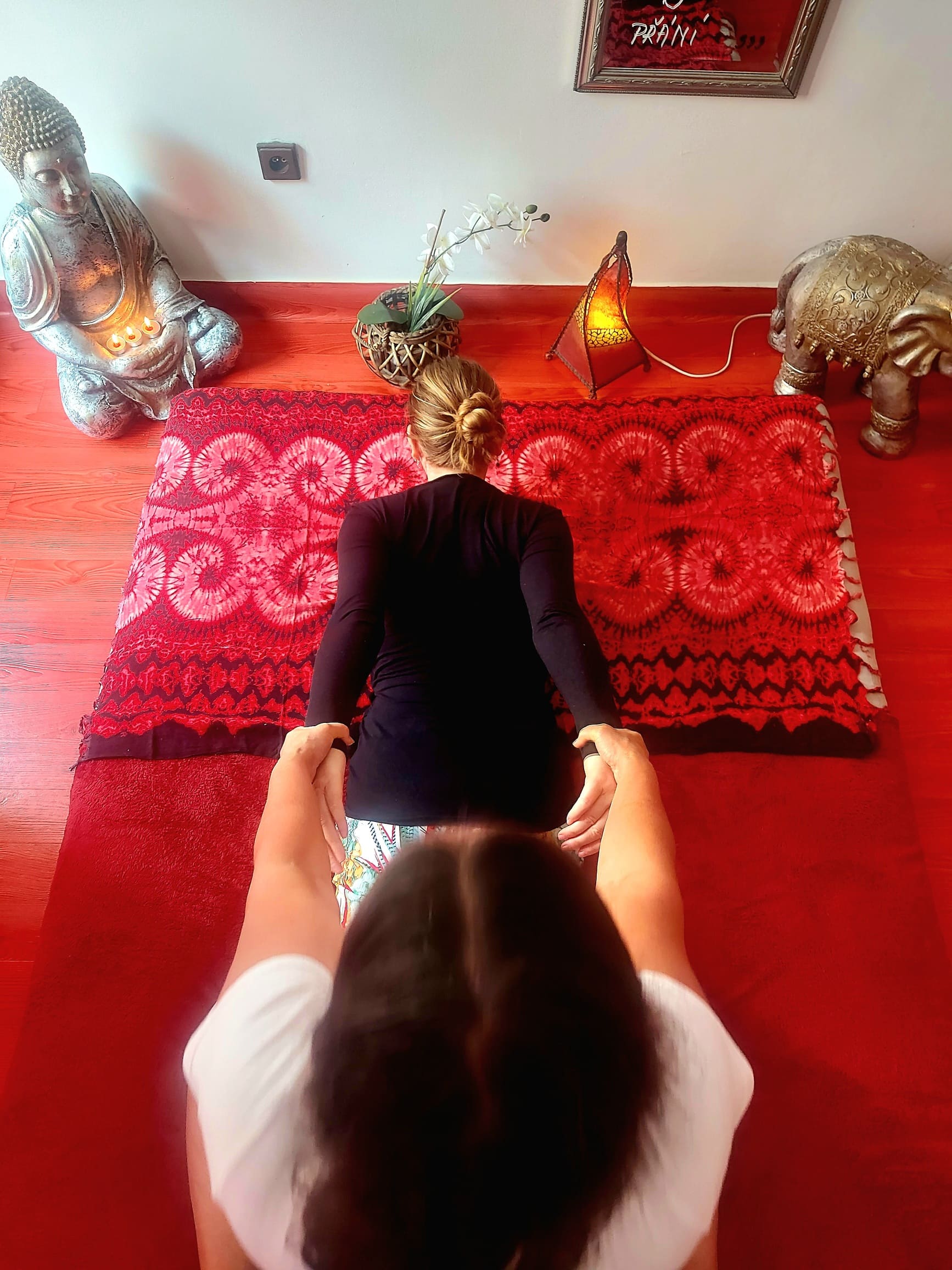 Začíná se uvolněním na zádech za použití masážních měšců. Navazuje masáž chodidel houpavým pohybem a pokračuje se technikou Tok Sen pro uvolnění energetických drah v těle. Mohu nabídnout sérii protahovacích cviků pro ty, kteří nejsou ohební a sami se nedostanou do základních ásan. Masér zapojuje celé své tělo, doteky chodidly či lokty jsou vždy cílené a není používána násilná manipulace. Thajská masáž je kombinace tlakové, bodové a liniové masáže včetně pasivního protažení.